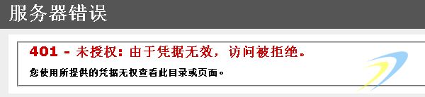 也就出現了文件上傳成功但瀏覽器訪(fǎng)問(wèn)時(shí)出現“401 - 未授權: 由于憑據無(wú)效,訪(fǎng)問(wèn)被拒絕。”的問(wèn)題