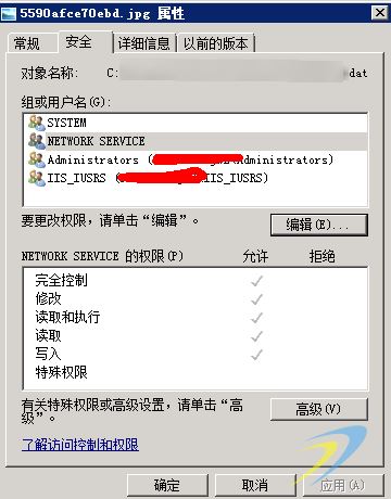 看到這我就想不明白了,既然目錄的權限有"Everyone"項那么上傳的圖片的權限也應該繼承父類(lèi)的權限才對,所以好長(cháng)時(shí)間也沒(méi)有想明白這其中的原因
