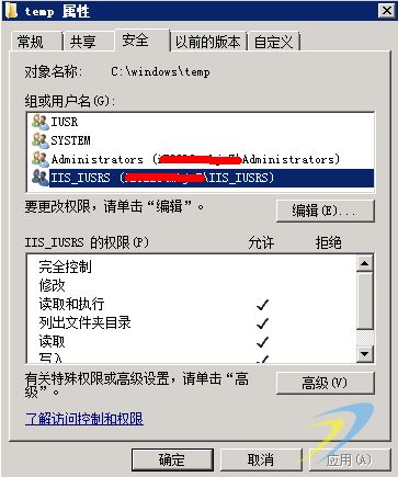 這樣就存在一個(gè)問(wèn)題,即Temp目錄下默認的權限是沒(méi)有相應的IIS訪(fǎng)問(wèn)權限的(windows默認配置),當文件上傳到該目錄時(shí)那么上傳的文件默認是繼承了Temp目錄的權限